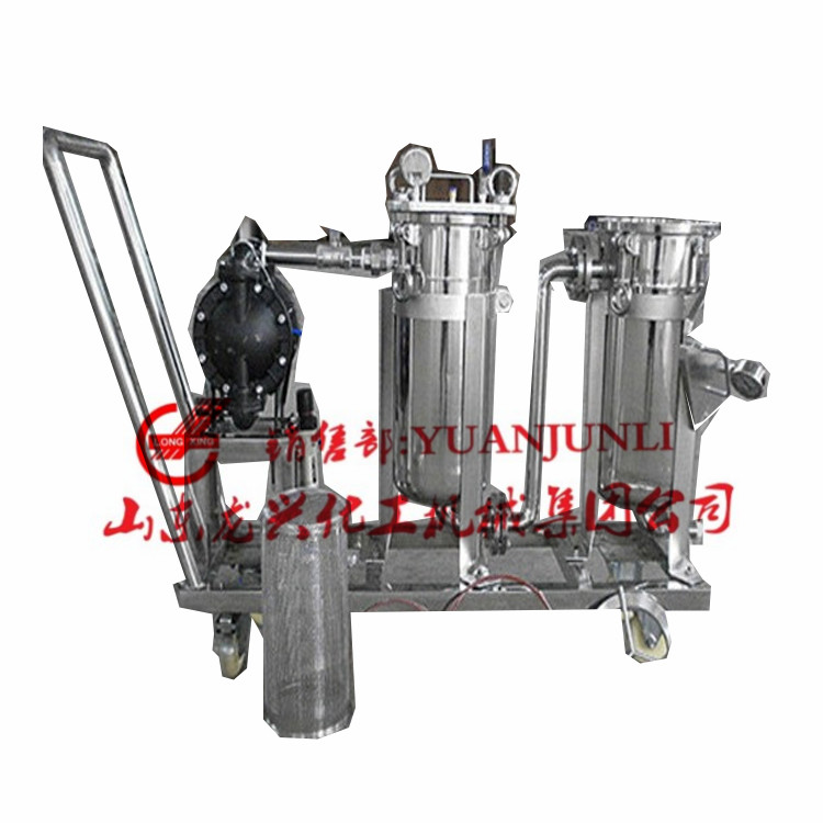 袋式過濾機是一種結構新穎、體積小、操作簡便靈活、節能、高效、密閉工作、適應性強的多用途過濾設備。袋式過濾機主要有過濾缸筒體、過濾缸蓋和快開機構、不銹鋼袋加強網等主要部件組成。該系列過濾機是一種壓力式過濾裝置。原液由進料口流入裝置在加強網內的濾袋,受壓,合格品滲透濾袋,由出料口排出,進入下道工序,雜質顆粒被濾袋捕捉。整個過程高效、簡便,且更換濾袋十分方便,基本不產生物料消耗。該機適用于油漆、啤酒、植物油、醫藥用、化妝品、化學藥品、石油產品、紡織化學品、感光化學品、電鍍液、牛奶、礦泉水、熱溶劑、乳膠、工業用水、糖水、樹脂、油墨、工業廢水、果汁、食用油、蠟類等 。