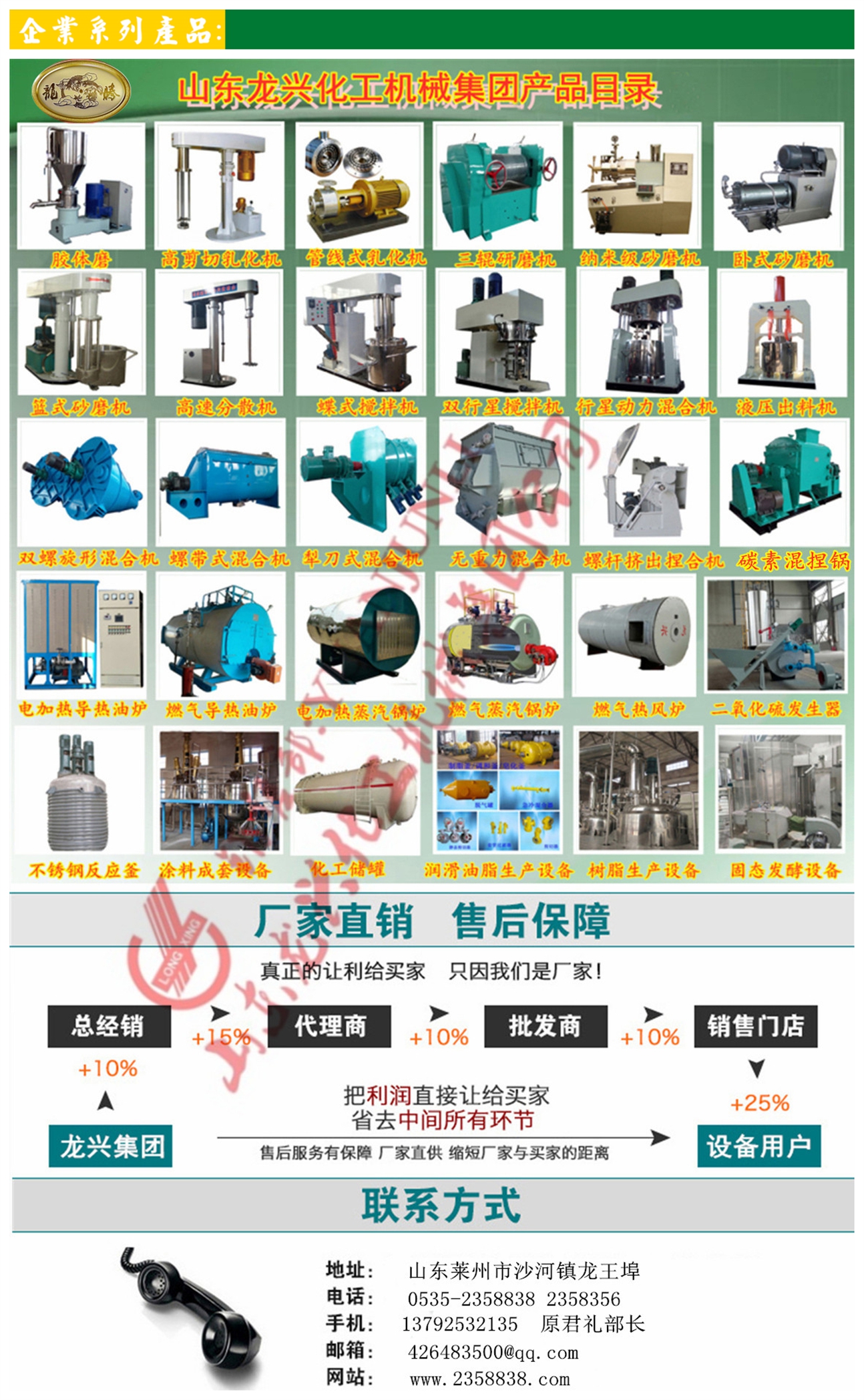 我公 司憑借在業(yè)內(nèi)三十余年的技術(shù)積累和成長(zhǎng)經(jīng)歷,已經(jīng)發(fā)展為集科研、開(kāi)發(fā)、制造為一體的科技型集團(tuán)公司,主要業(yè)務(wù)涉及 液體研磨機(jī)、攪拌分散機(jī),膏體混拌捏合機(jī)、雙行星動(dòng)力攪拌混合機(jī),干粉攪拌混合機(jī),導(dǎo)熱油、蒸汽 鍋爐、反應(yīng)釜和換熱器及一二三類壓力容器的設(shè)計(jì)與生產(chǎn)。 同時(shí)我們承接行業(yè)用戶成套設(shè) 備及生產(chǎn)線的設(shè)計(jì)制造業(yè)務(wù),龍興人愿與天下有識(shí)之士攜手共創(chuàng)新的輝煌。