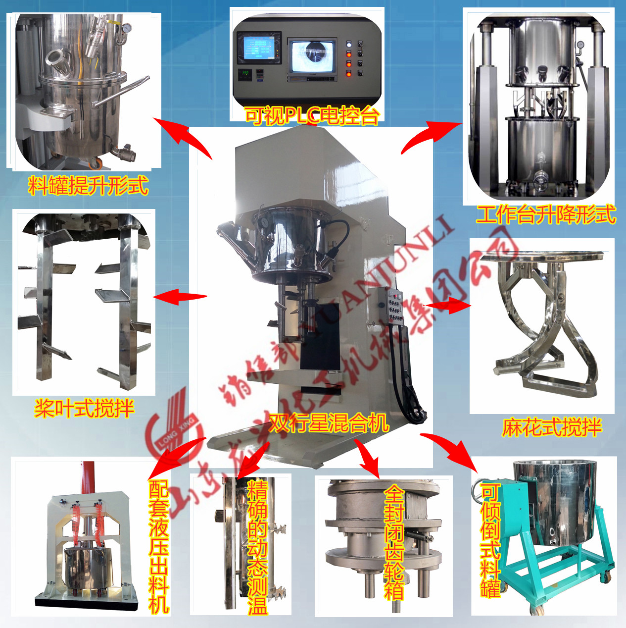 真空型雙行星混合攪拌機適用于化工、輕工、食品、電池漿料、制藥、建材、nong藥等行業所需的多組份固—固相、固—液相、液—液相物料的混合、反應、分散、溶解、調質等工藝,如硅酮密封膠、硅酮結構膠、有機硅油墨、顏料、粘膠劑、密封膠、灌裝膠軟膏、糊狀物料、潤滑脂、油漆、膏狀化妝品、膏狀食品、添加物等多種高粘稠物的制備。使用粘度范圍1-5萬厘泊左右。攪拌器的形式,根據物料要求可為多層槳葉式、框式、蝶式、渦輪式等 。