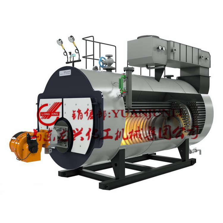 燃油燃氣蒸汽鍋爐為臥式快裝內燃三回程火管鍋爐。采用偏置爐膽濕背式結構,高溫煙氣依次沖刷第二及第三回程煙管,然后由后煙室經煙囪排入大氣。鍋爐裝有活動的前后煙箱蓋,使鍋爐檢修方便。鍋爐配置技術性能良好燃燒器,采用了燃燒自動比例調節,給水自動調節,程序啟停,全自動運行等先進技術,并具有高低水位報警和極低水位、超高汽壓、熄火等自動保護功能。該型鍋爐具有結構緊湊、安全可靠、操作簡便、安裝迅速、污染少、噪音低、效率高等特點。