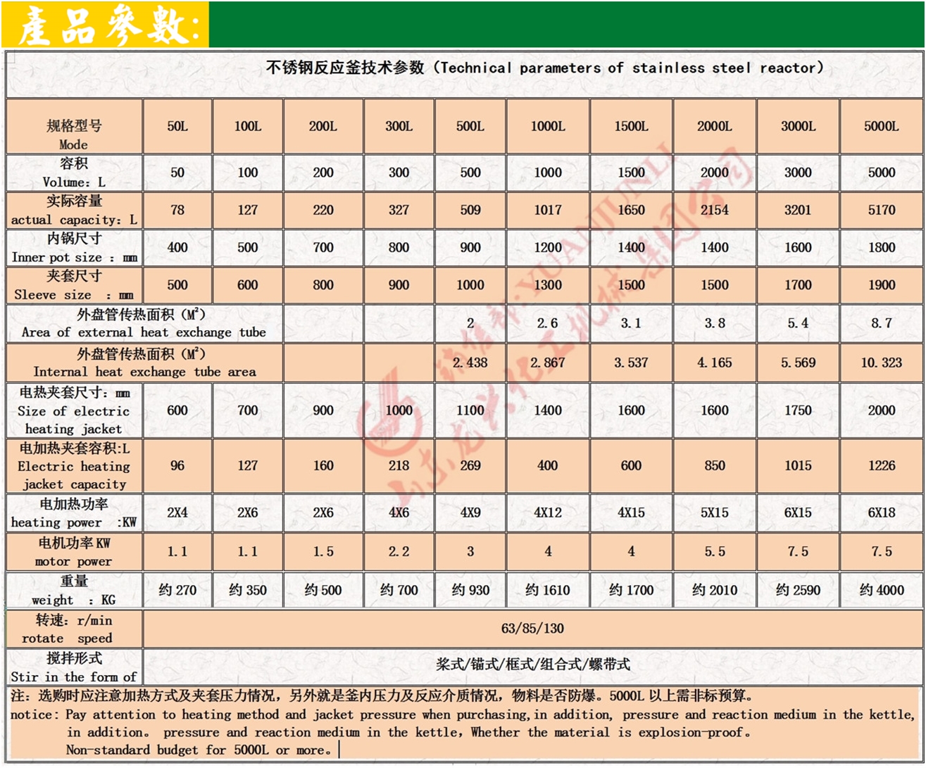 4.傳熱效果比搪瓷反應(yīng)釜好,升溫和降溫速度較快。